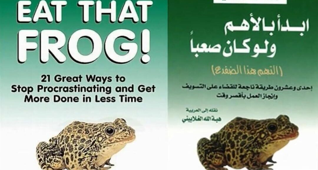 التهم هذا الضفدع | لماذا عليك أن تأكل ضفدع كل صباح؟ حيث يتضمن كتاب “ابدأ بالأهم ولو كان صعبا” التهم هذا الضفدع لمؤلِّفه “برايان تريسي” 21 طريقةً ناجحةً للقضاء على التسويف وإنجاز الأعمال في أقصر وقت. ويستفتح الكاتب كتابه بقوله: “يُقال على مر السنين أنَّه إذا كان أول شيء تفعله كل صباح هو أكل ضفدع حي!