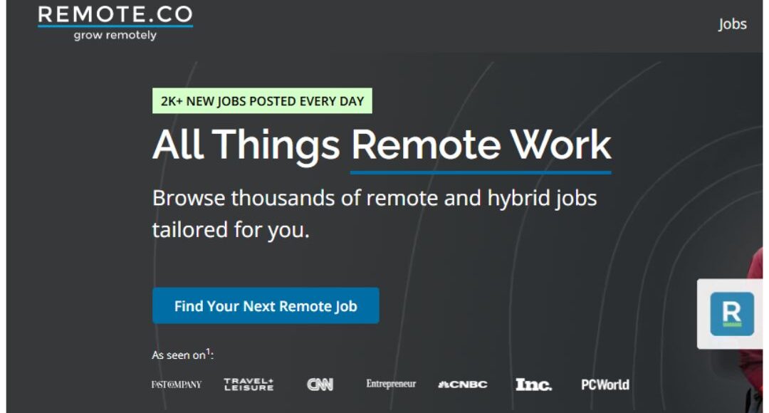 Remote.co هو موقع إلكتروني تأسس بهدف دعم ثقافة العمل عن بعد، من خلال توفير فرص عمل متنوعة لشركات تؤمن بهذا النمط من التوظيف.