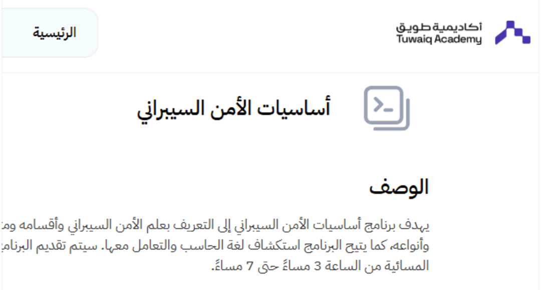التسجيل في دورة أساسيات الأمن السيبراني يتم بسهولة عبر موقع أكاديمية طويق. كل ما تحتاج إليه:
