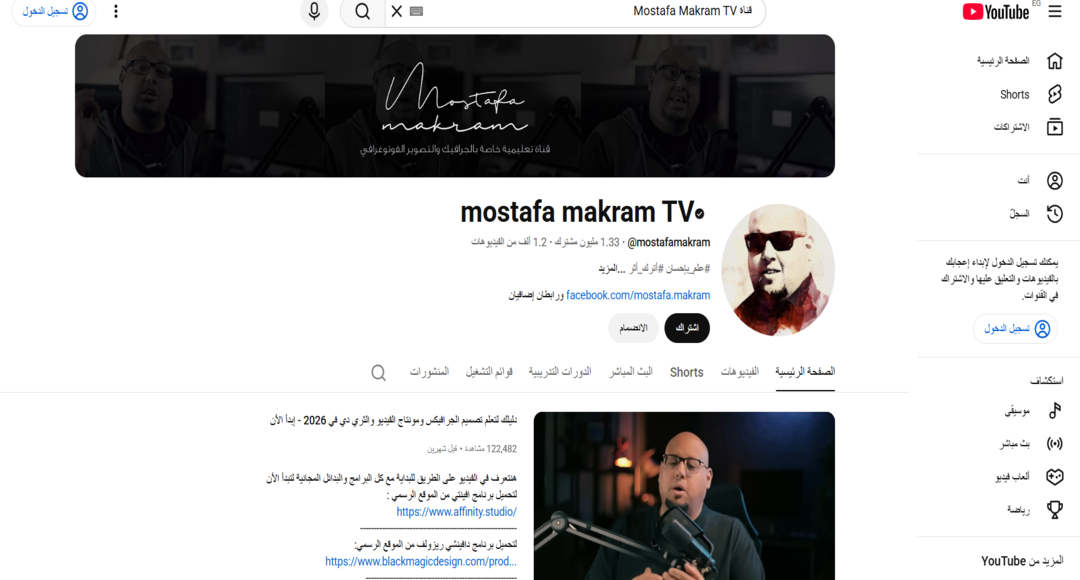 4. أهم ما يميز كورسات اليوتيوب أنها مجانية ومفتوحة لكي تسمح للطلاب الدراسة وفق جدولهم الخاص والتمكن الكامل من إعادة مشاهدة الشرح حسب الحاجة مع التوقف عند النقاط الصعبة واستيعابها قبل الانتقال لذلك قناة Mostafa Makram TV تساعد في الوصول إلى محتوى احترافي دون تكلفة مالية حتي يتم سد فجوة المحتوى العربي في برامج التصميم الاحترافية وزيادة فرص لجميع الشباب المنطقة العربية في دخول سوق العمل الرقمي مباشرة.