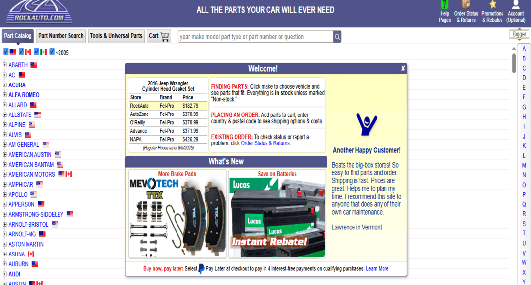 RockAuto يوفر كل ما تحتاجه عن قطع غيار السيارات عبر الإنترنت