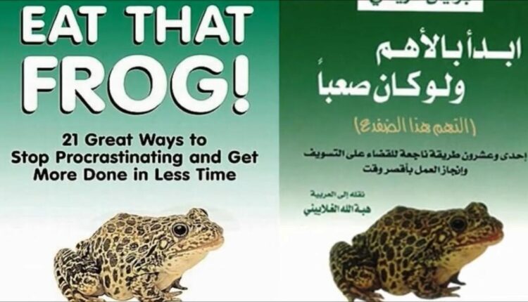 التهم هذا الضفدع | لماذا عليك أن تأكل ضفدع كل صباح؟ حيث يتضمن كتاب “ابدأ بالأهم ولو كان صعبا” التهم هذا الضفدع لمؤلِّفه “برايان تريسي” 21 طريقةً ناجحةً للقضاء على التسويف وإنجاز الأعمال في أقصر وقت. ويستفتح الكاتب كتابه بقوله: “يُقال على مر السنين أنَّه إذا كان أول شيء تفعله كل صباح هو أكل ضفدع حي!