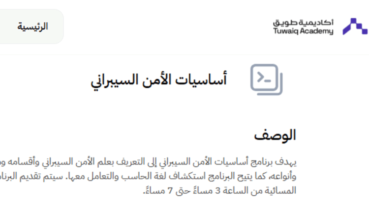 التسجيل في دورة أساسيات الأمن السيبراني يتم بسهولة عبر موقع أكاديمية طويق. كل ما تحتاج إليه: